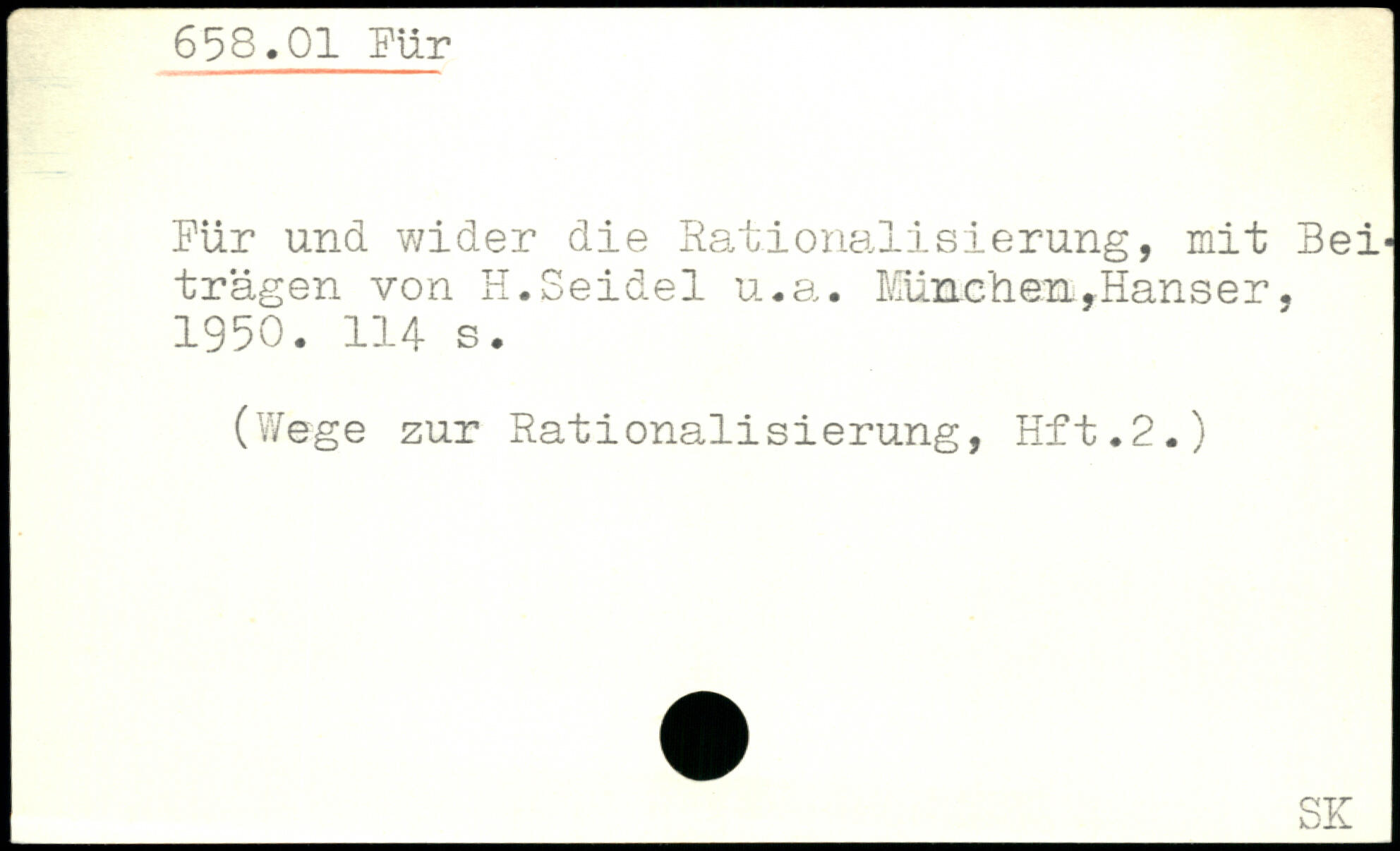 Pur und wider die Rationalisierung, mit Beiträgen von H.Seidel u.a. München,Hanser. 1950.