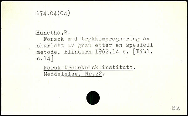 Forsøk r. : d trykkimpregnering av skurlast av gran etter en spesiéll metode. Blindern 1962.