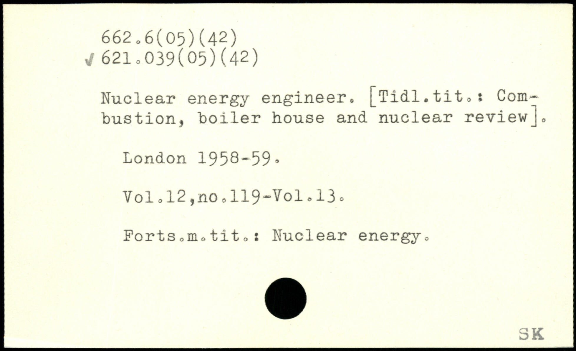 Nuclear energy engineer. [Tidl.titoX Combustion, boiler house and nuclear review].