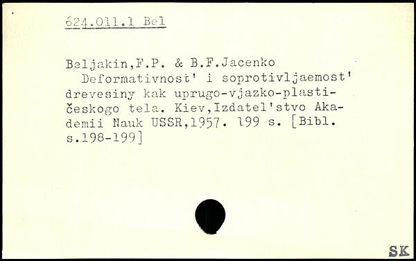 Déformâtivnosfc’ i soprotivljaemost’ drevesiny kak uprugo-vjazko-plasti-ceskogo tela. Kiev,Izdatel'stvo Aka- demii Nauk USSR,1957.