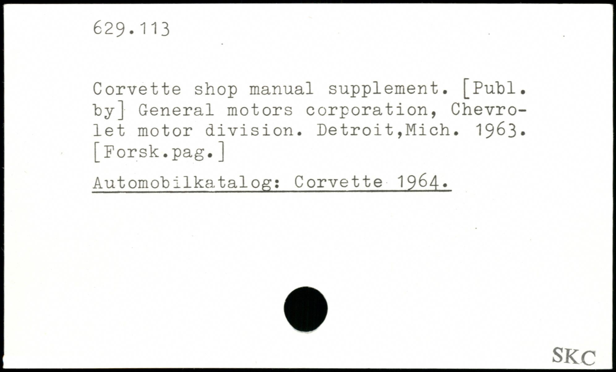 Corvette shop manual supplement.