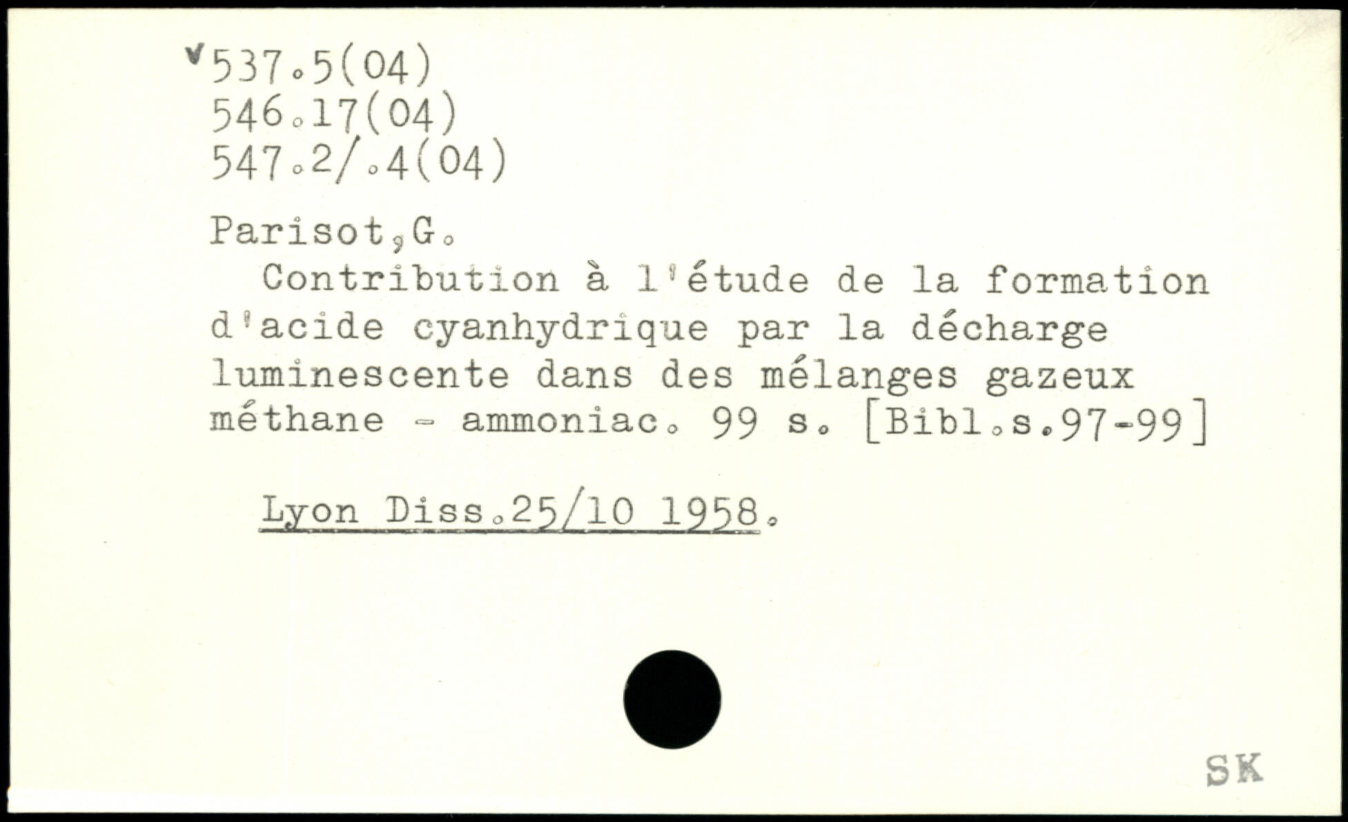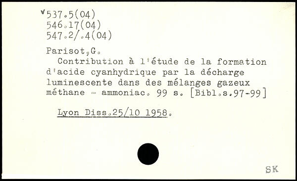 Contribution à 19 étude de la formation diacide cyanhydrique par la décharge luminescente dans des mélanges gazeux méthane .=■ ammoniac