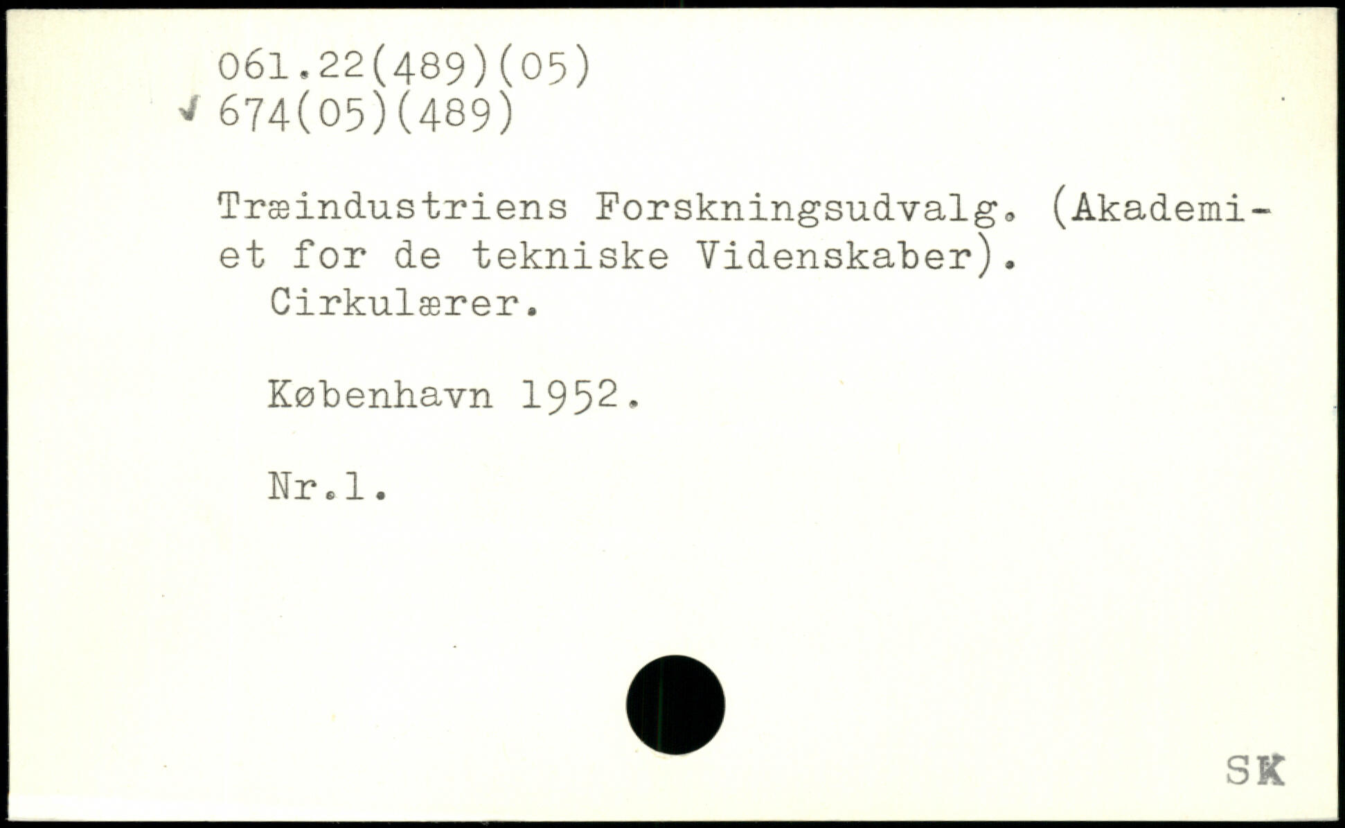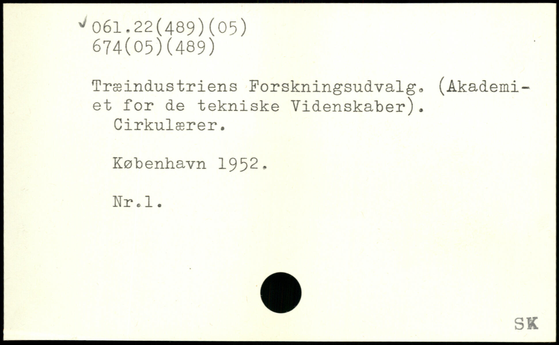 Træindustriens Forskningsudvalg, (Akademiet for de tekniske Videnskaber). Cirkulærer.