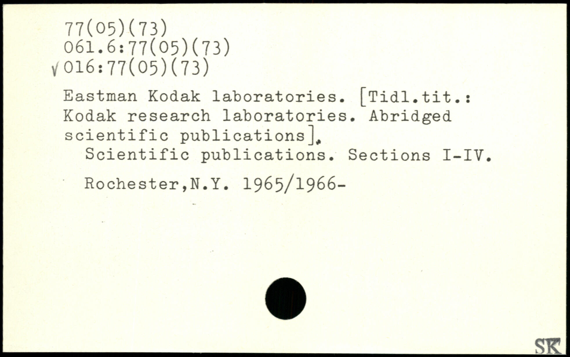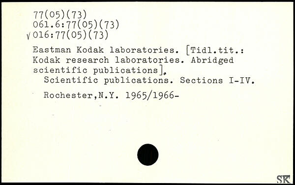 Eastman Kodak laboratories. [Tidl.tit.: Kodak research laboratories. Abridged scientific publications]. Scientific publications. Sections I-IV. Rochester,N.Y. 1965/1966-