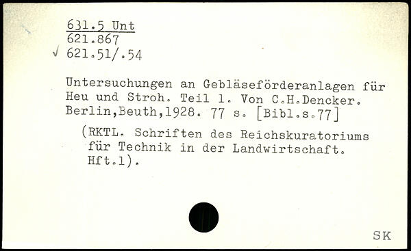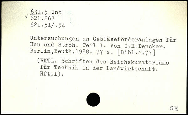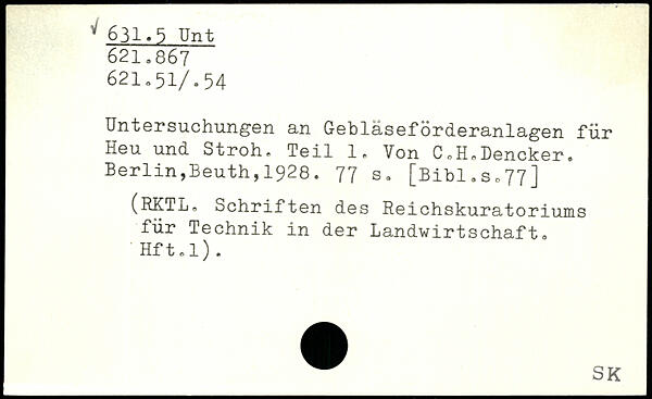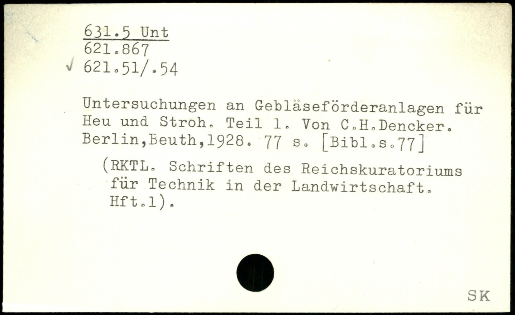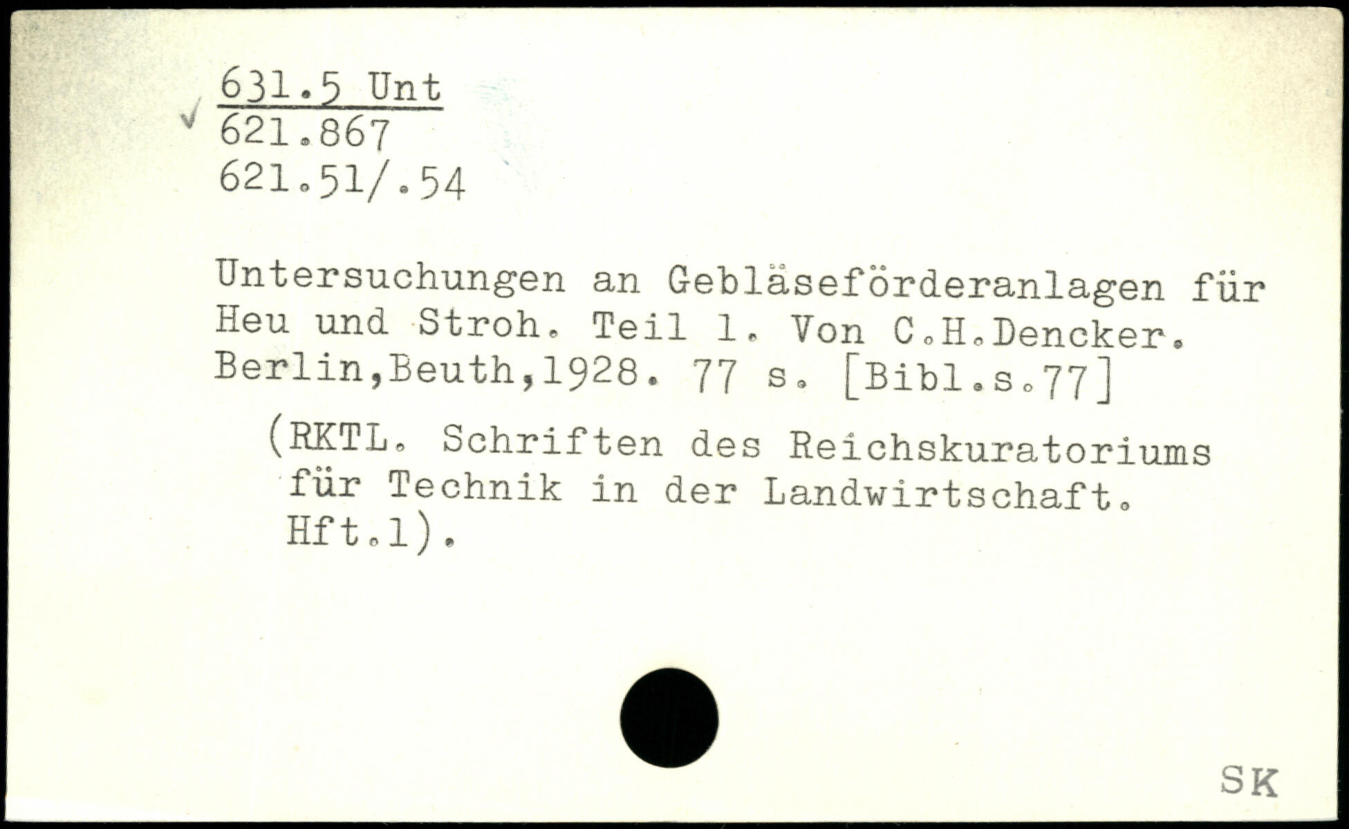 Untersuchungen an Gebläseförderanlagen für Heu und Stroh, Teil 1, Von CoH.Dencker.