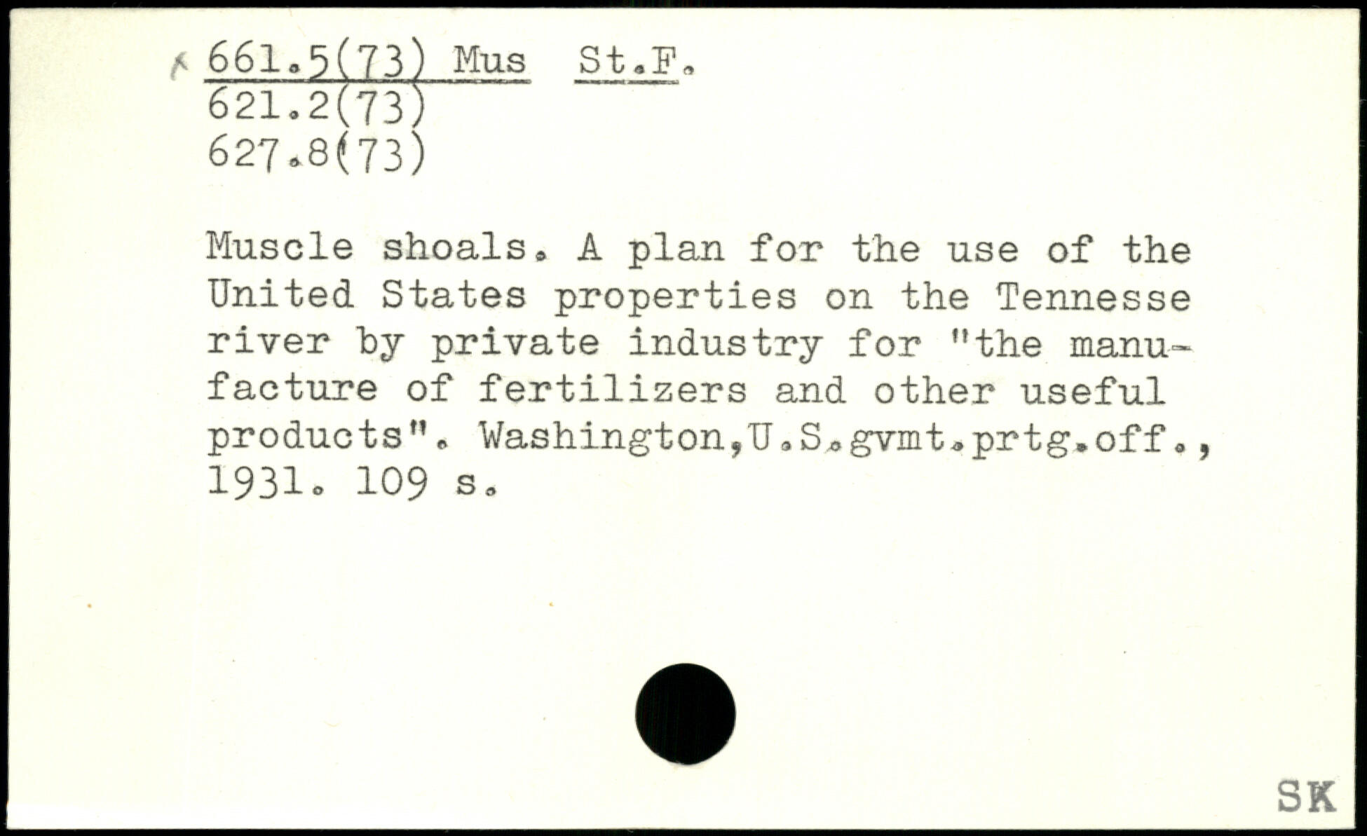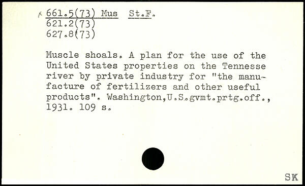 Muscle shoals. A plan for the use of the United States properties on the Tennesse river by private industry for "the manufacture of fertilizers and other useful products". Washington,U3SÆgvmt.prtg.off., 1931.
