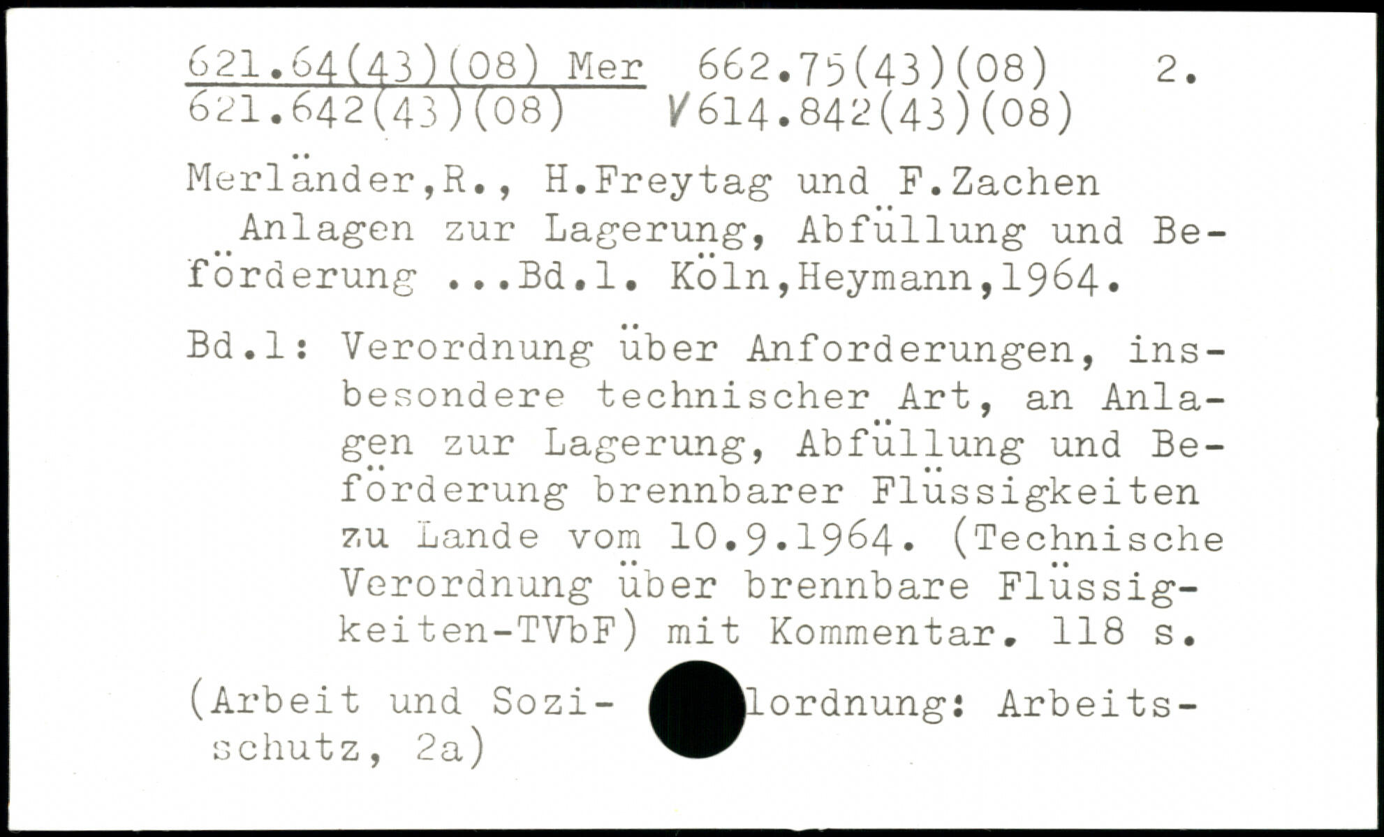 Merlander,R., H.Freytag und F.Zachen ^Anlagen zur Lagerung, Abfüllung und Beförderung ...Bd.l.