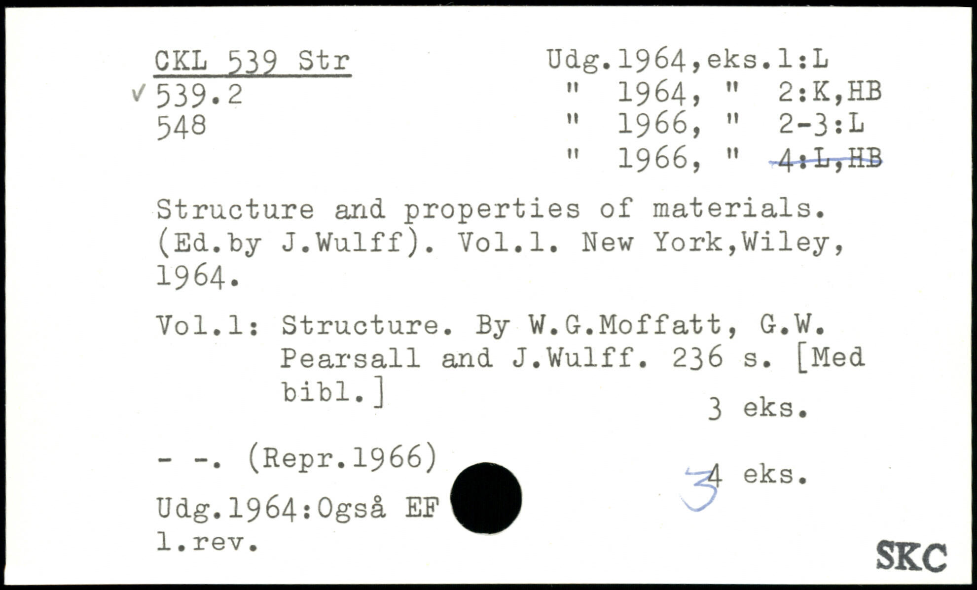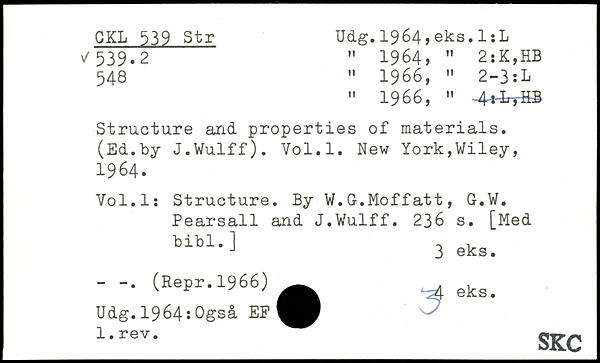 " 1966, " 4+iyHB Structure and. properties of materials. (Ed.by J.Wulff).