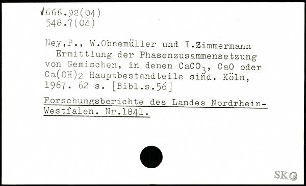 -Hsyjp,, W.Obnemuller und. I. 2iuunerinann Ermittlung der Phasenzusammensetzung von Gemischen, in denen CaCO->, CaO oder Ca(0H)2 Hauptbestandteile sind. Köln, 1967.