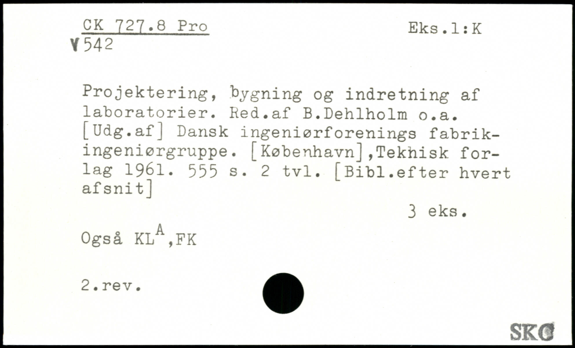 Projektering, bygning og indretning af laboratorier. Red.af B.Dehlholm o.a.