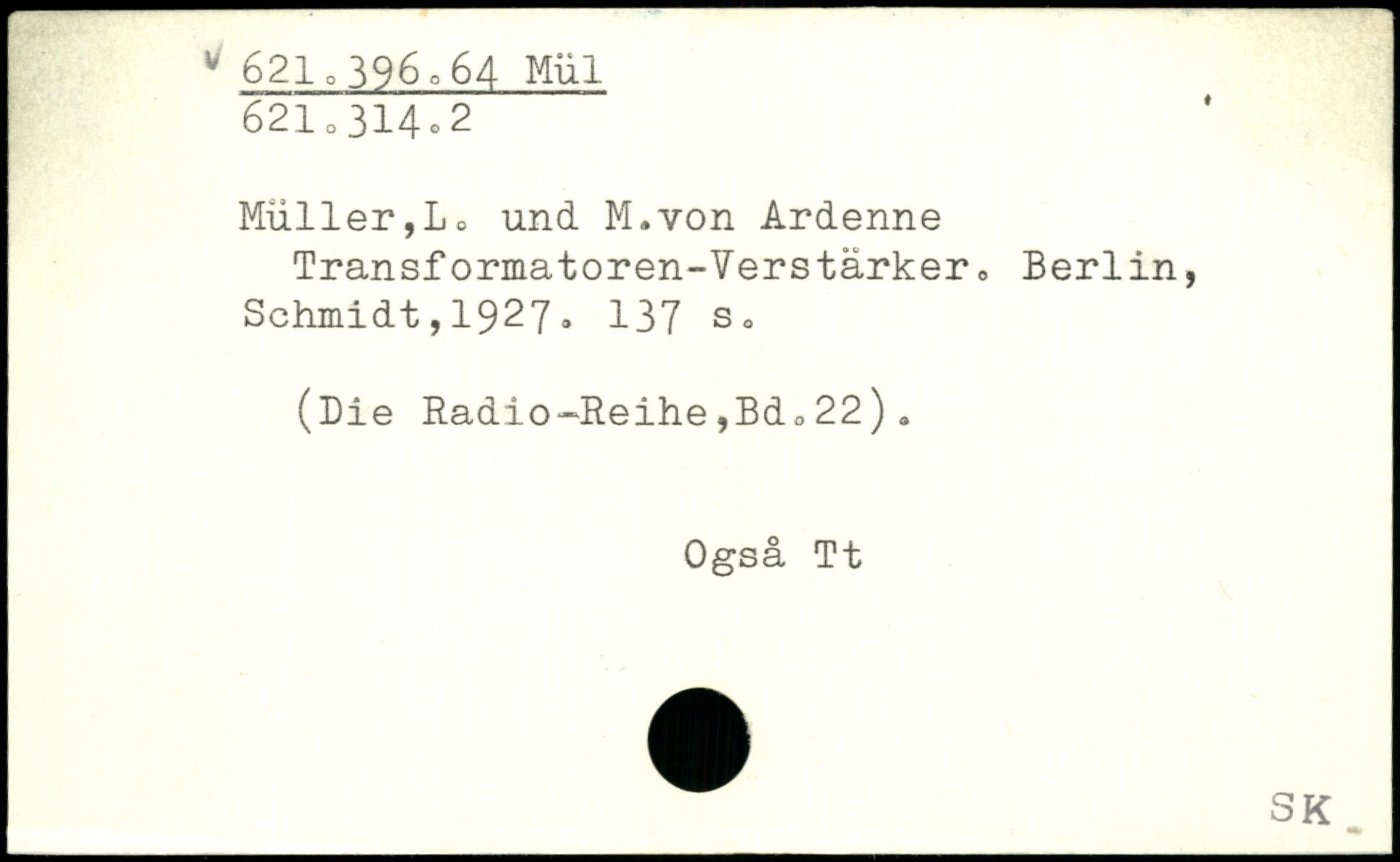 Müller,Lo und M.von Ardenne Transf ormatoren-Verstarker.