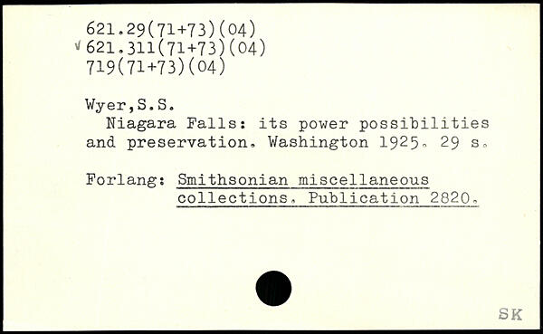 Niagara Falls: its power possibilities and preservation. Washington 29 Forlang: Smithsonian miscellaneous collections. Publication 2820.
