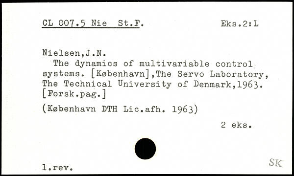 The dynamics of multivariable control systems. [København],The Servo Laboratory, The Technical University of Denmark,1963.