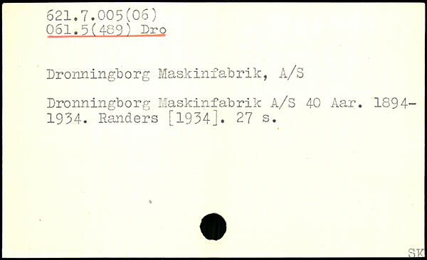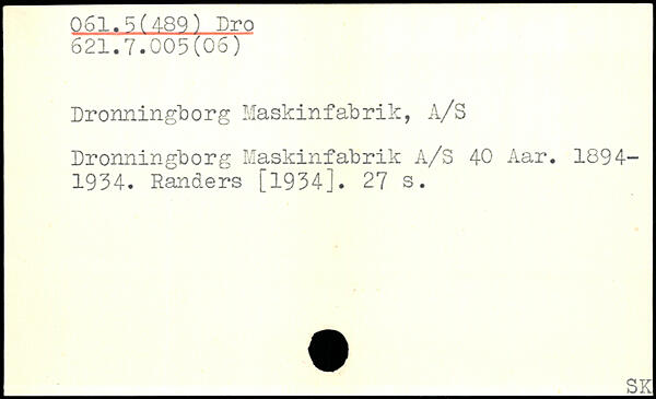 Dronningborg Maskinfabrik, A/S Dronningborg Maskinfabrik A/S 40 Aar. 1894-1934. Randers [1934].
