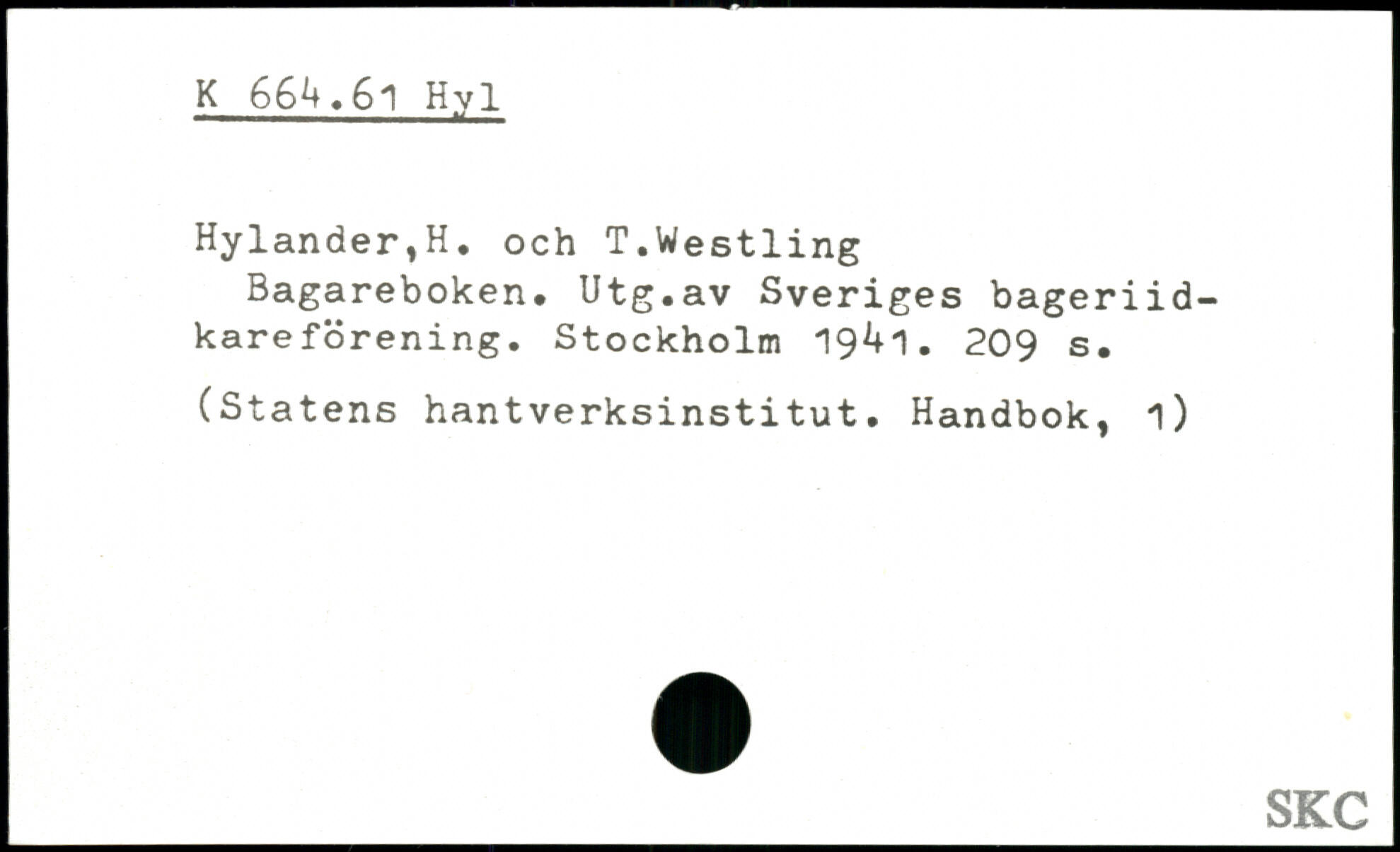 Bagareboken, Utg.av Sveriges bageriid-kareförening.