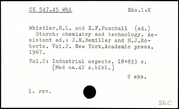 Starch: chemistry and technology. Assistant ed.: J.N.Bemiller and H.J.Roberts.