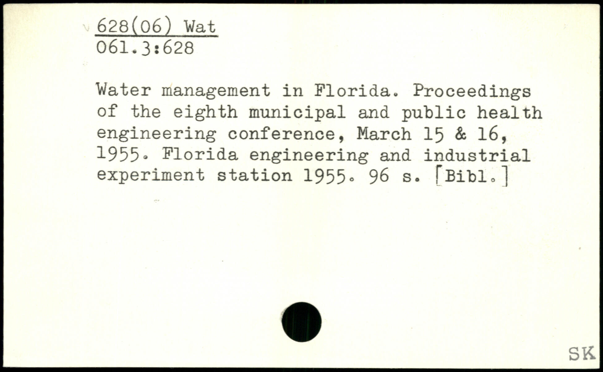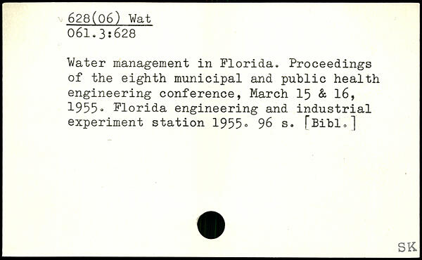 Water management in Florida. Proceedings of the eighth municipal and public health engineering conference, March 15 & 16, 1955, Florida engineering and industrial experiment station 1955