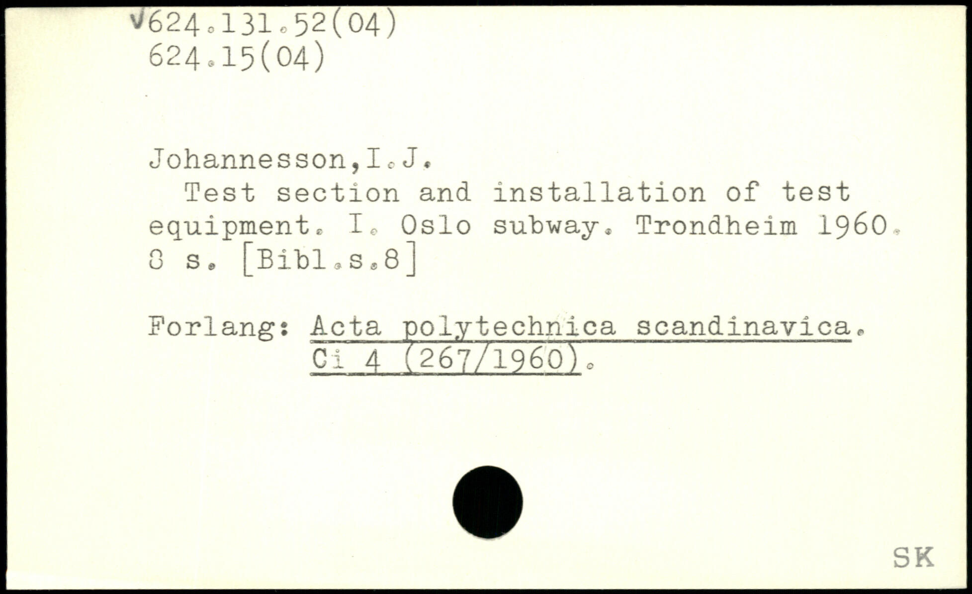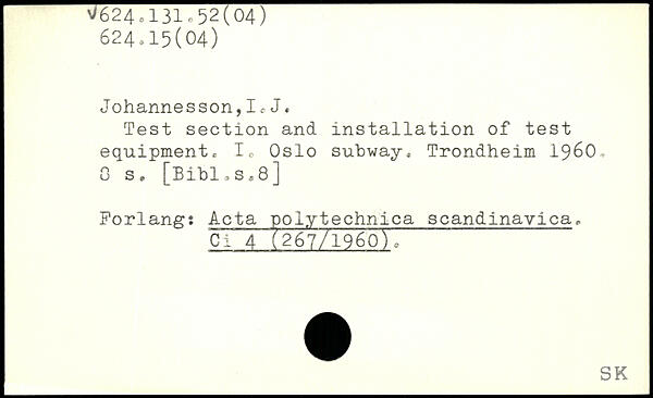 Johannesson,Ic J. Test section and installation of test equipment. L Oslo subway.