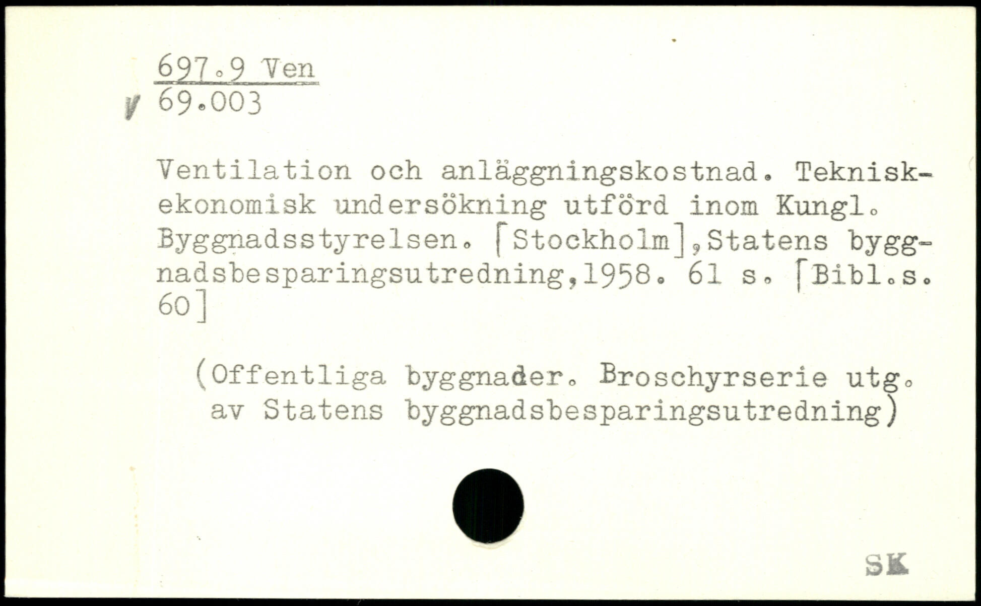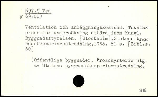 Ventilation och anläggningskostnad. Teknisk-ekonomisk 'undersökning utförd inom Kunglo Byggnadsstyrelsen, [Stockholm],Statens bygg-nadsbesparingsutredning,1958.