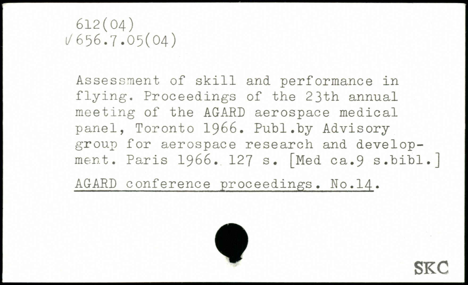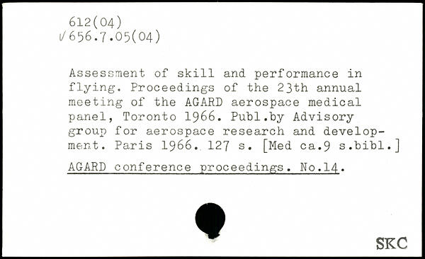 Assessment of skill and performance in flying. Proceedings of the 23th annual meeting of the AGARD aerospace medical panel, Toronto 1966.