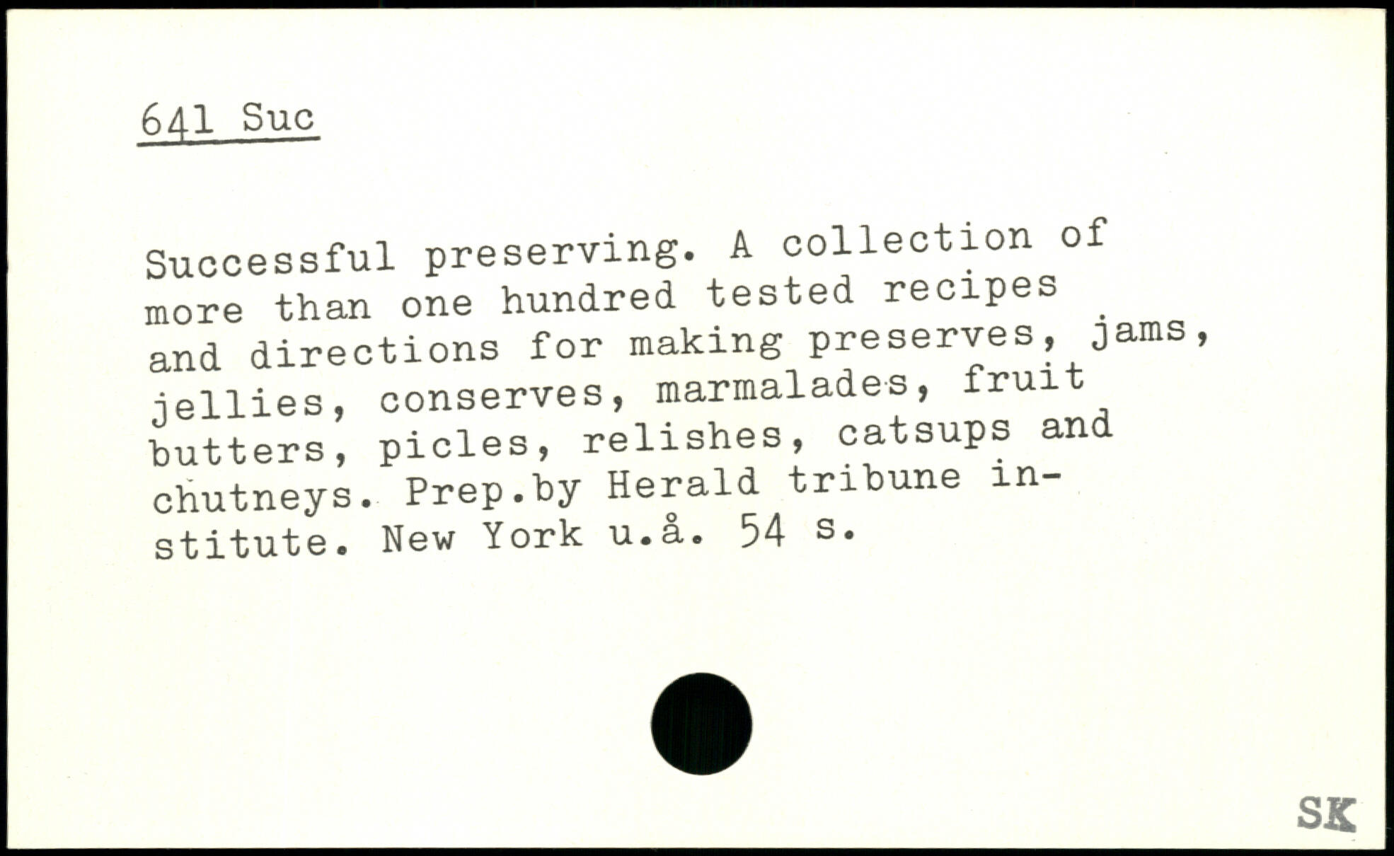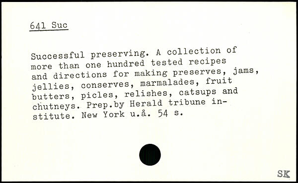 Successful preserving. A collection of more than one hundred tested recipes ^ and directions for making preserves, jams, iellies, conserves, marmalades, frui butters, picles, relishes, catsups and chutneys. Prep.by Herald tribune institute. New York u.a.