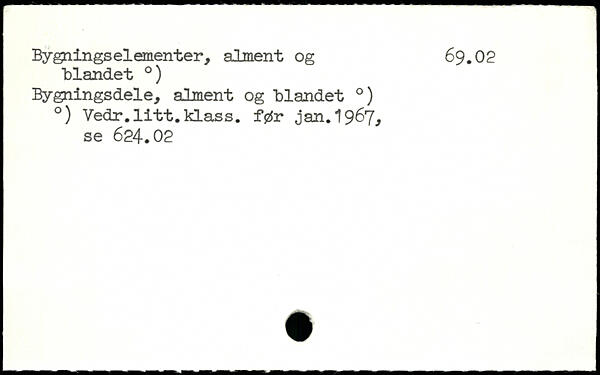 Bygningselementer, alment og 69.02 Blandet .) Bygningsdele, alment og Blandet .) .) Vedr.litt.klass. før jan.1967, se 624.02
