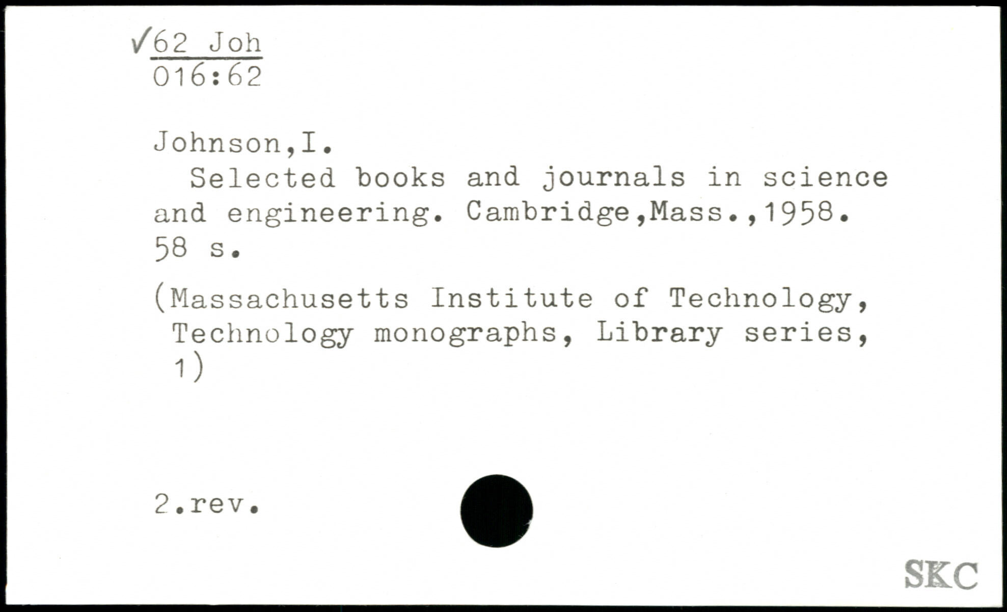 Selected books and journals in science and engineering. Cambridge,Mass1958.