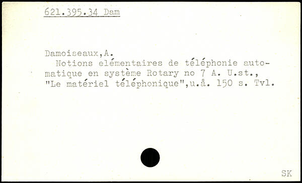 Dotions élémentaires de téléphonie automatique en système Rotary no 7 A. U.st., "Le matériel téléphonique",u.â.