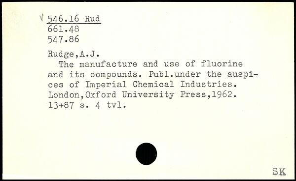 The manufacture and use of fluorine and its compounds. Publ.under the auspices of Imperial Chemical Industries.