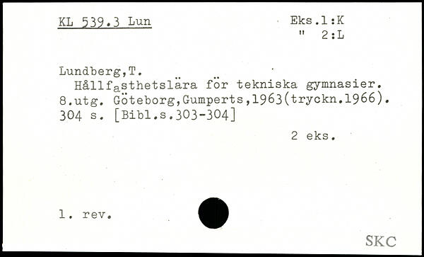 Hållfasthetslära för tekniska gymnasier. 8.utg. GÖteborg,Gumperts,1963(tryckn.1966).
