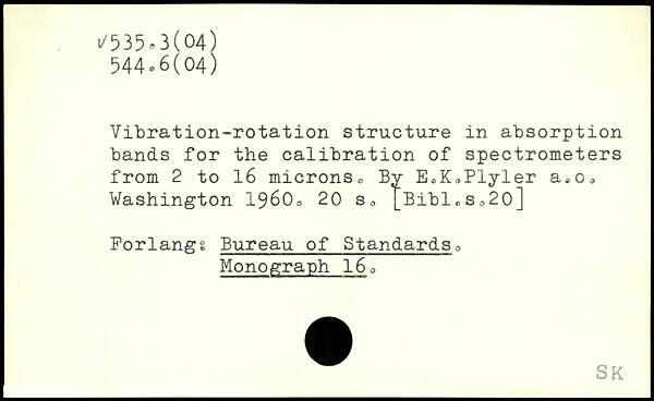 Vibration-rotation structure in absorption bands for the calibration of spectrometers from 2 to 16 microns, By EoK,Plyler a.o