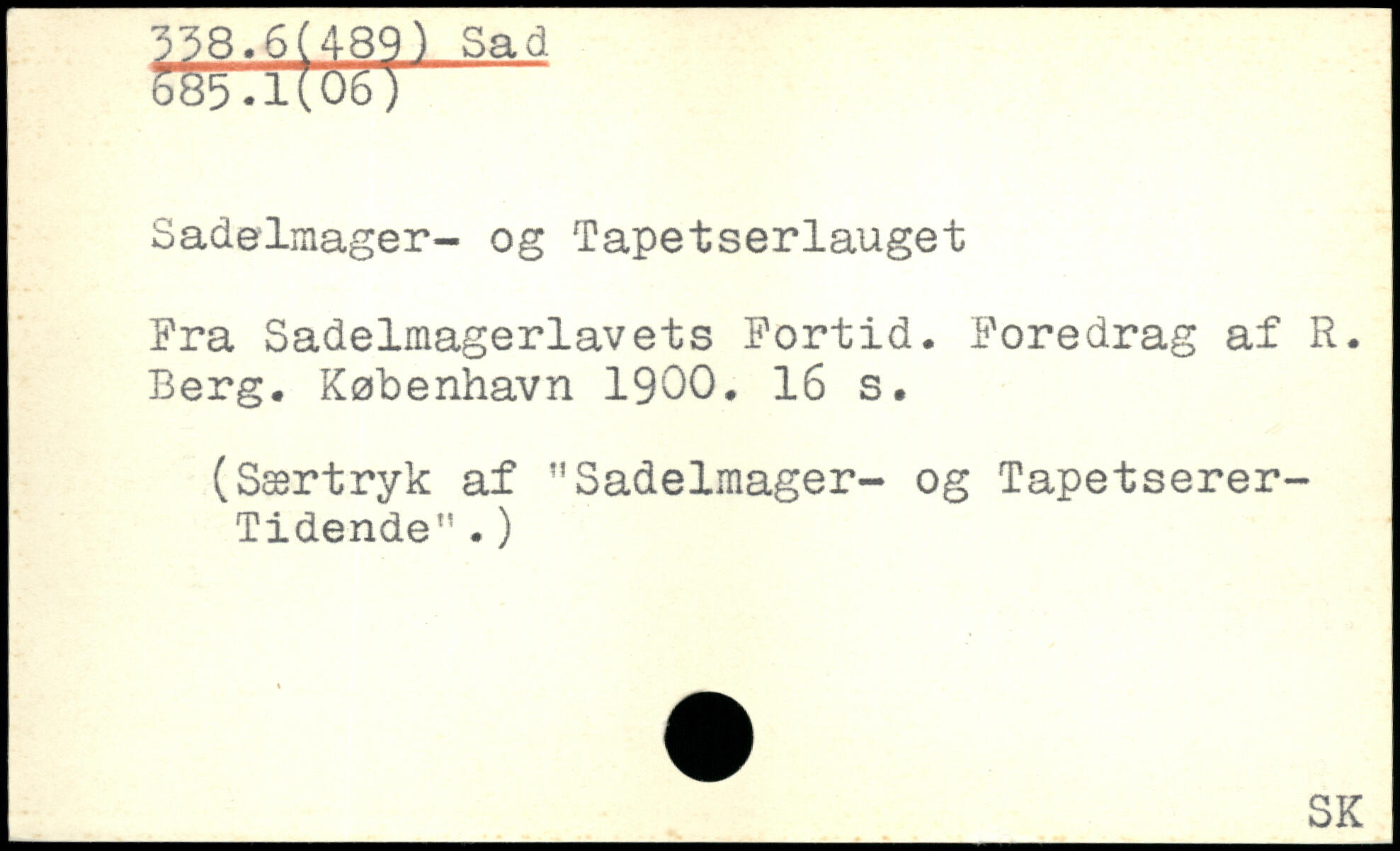 Fra Sadelmagerlavets Fortid. Foredrag af R. Berg.