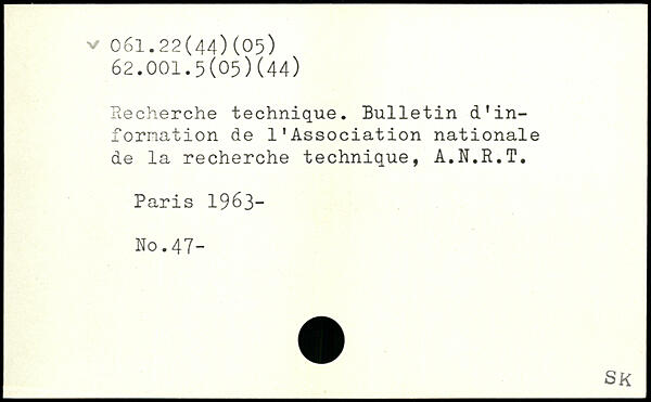 Recherche technique. Bulletin d.'information de l'Association nationale de la recherche technique, A.N.R.T.