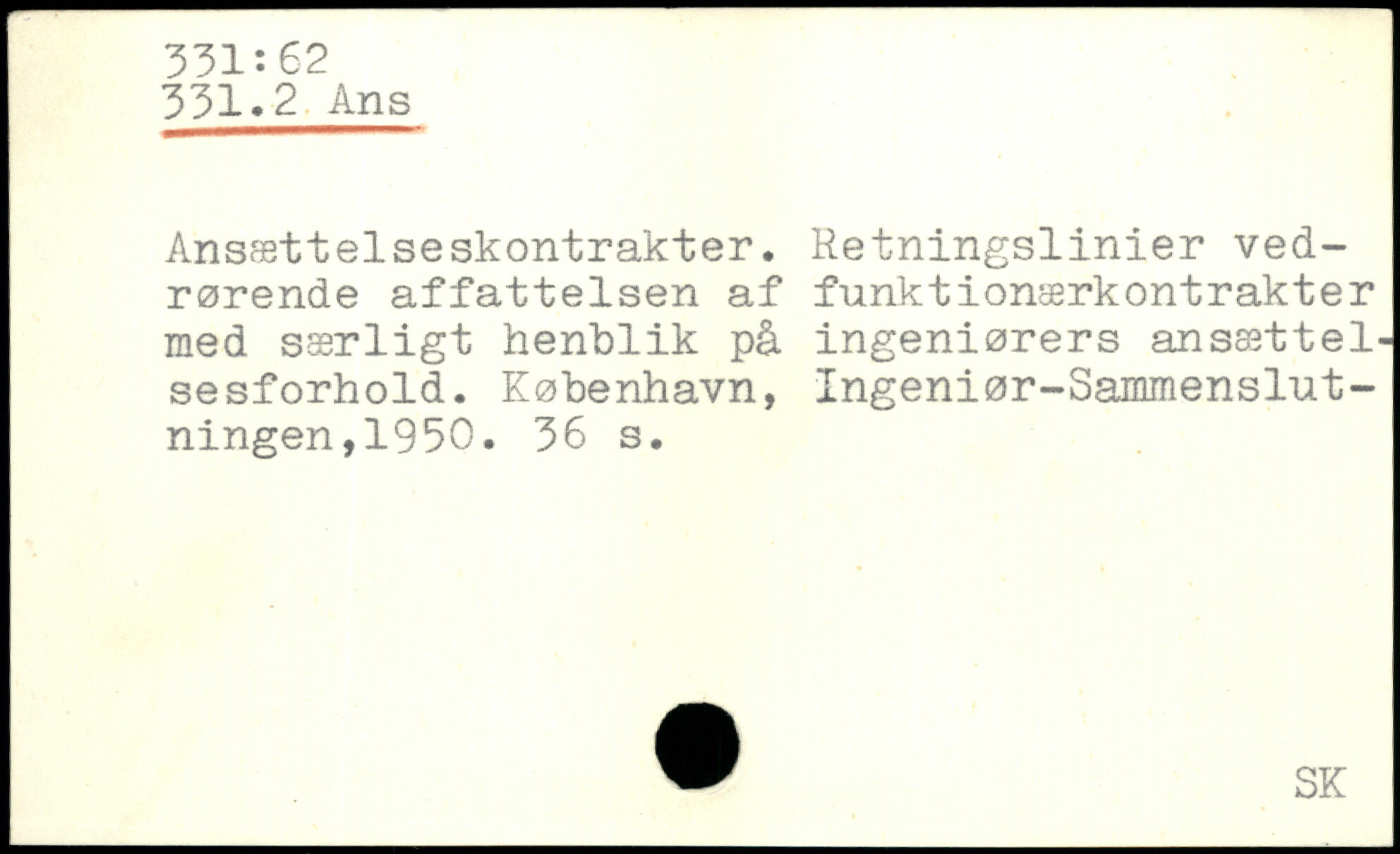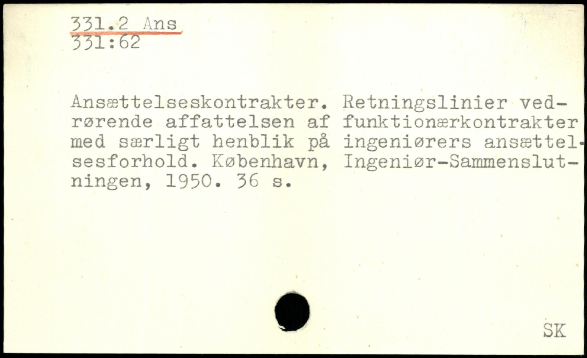 Ansættelseskontrakter. Retningslinier vedrørende affattelsen af funktionærkontrakter med særligt henblik på ingeniørers ansættelsesforhold.