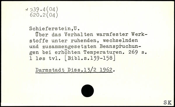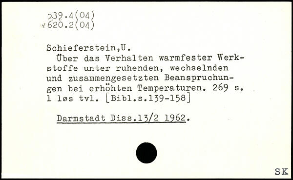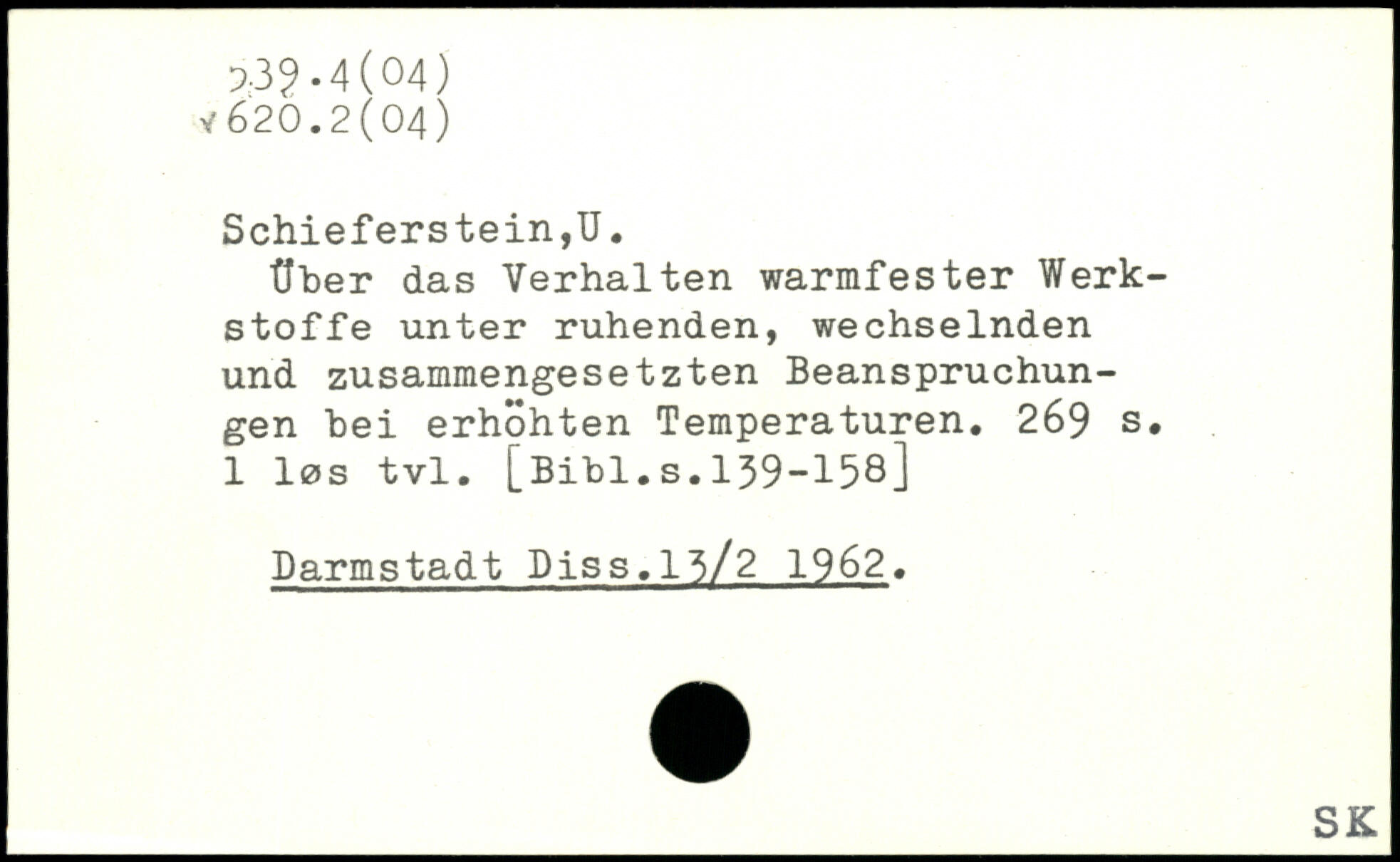 Über das Verhalten warmfester Werkstoffe unter ruhenden, wechselnden und zusammengesetzten Beanspruchungen hei erhöhten Temperaturen.