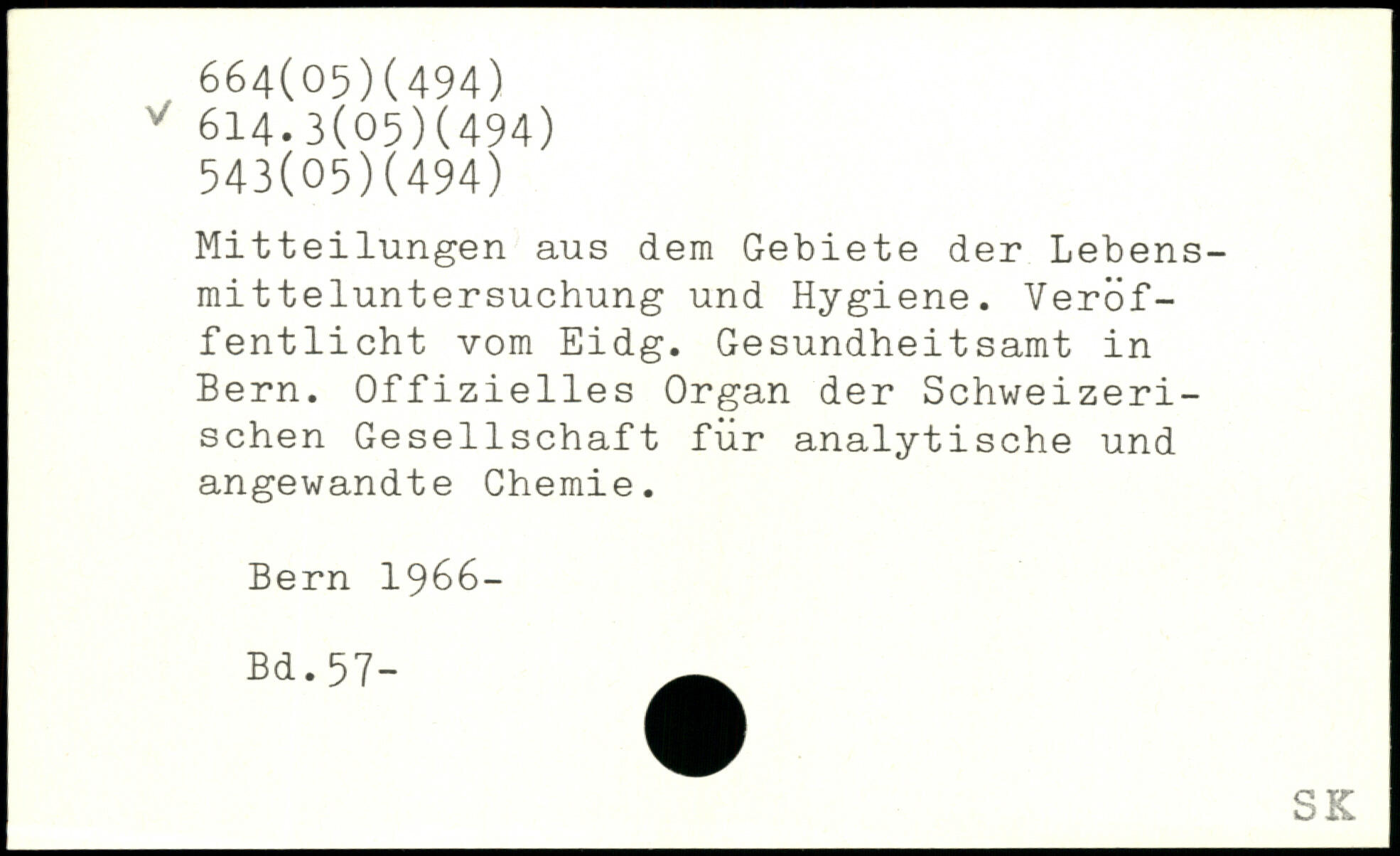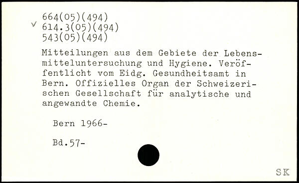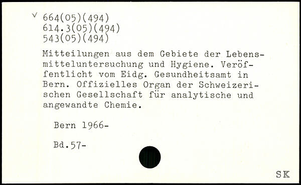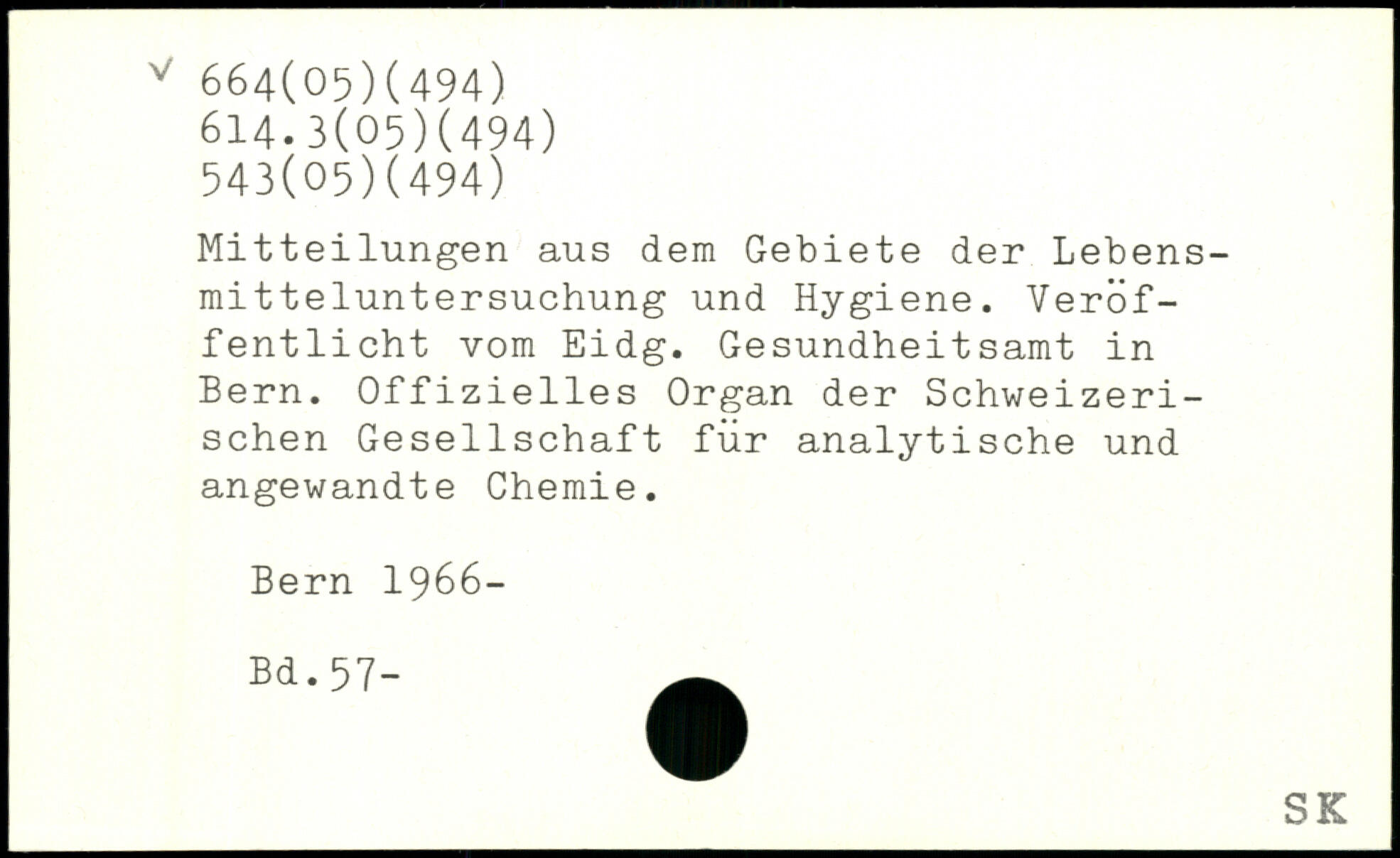 Mitteilungen aus dem Gebiete der Lebensmitteluntersuchung und Hygiene. Veröffentlicht vom Eidg. Gesundheitsamt in Bern. Offizielles Organ der Schweizerischen Gesellschaft für analytische und angewandte Chemie.
