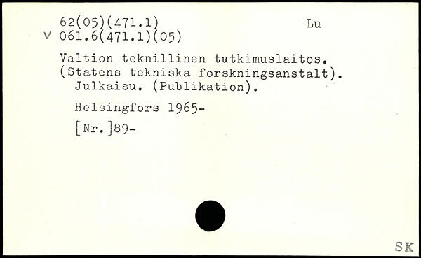 Valtion tekn1111nen tutkimuslaitos. (Statens tekniska forskningsanstalt). Julkaisu. (Publikation).