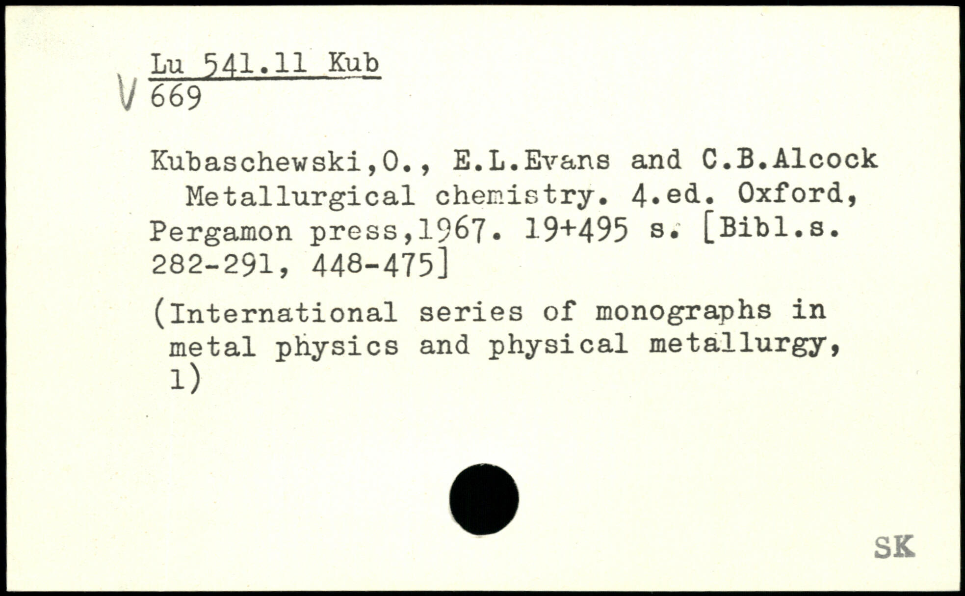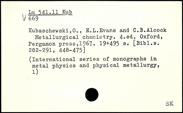 Kubaschewski,0., E.L.Evans and C.B.Alcock Metallurgical chemistry.