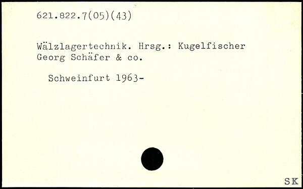Wälzlagertechnik. Hrsg.: Kugelfischer Georg Schafer & co. Schweinfurt 1963-