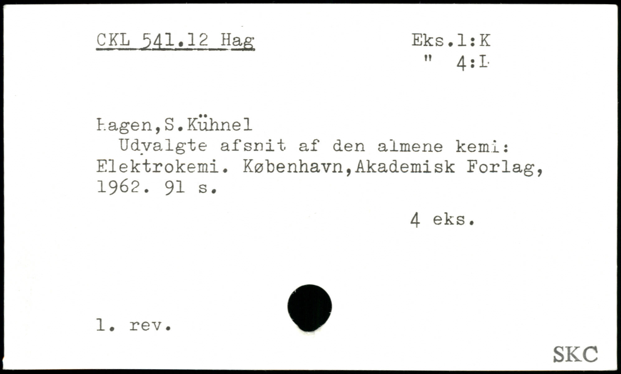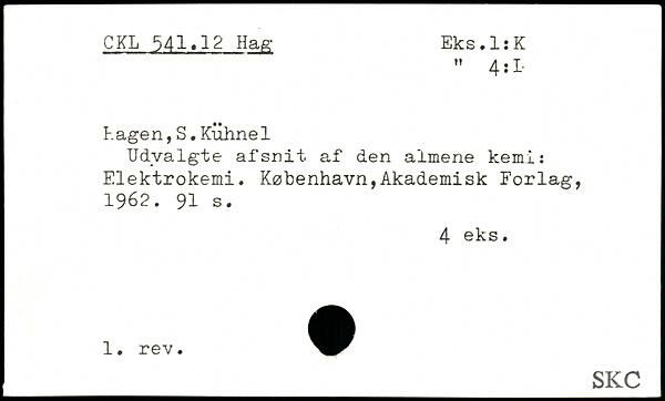 Lagen, S. Kiihnel Udvalgte afsnit af den almene kemi: Elektrokemi.