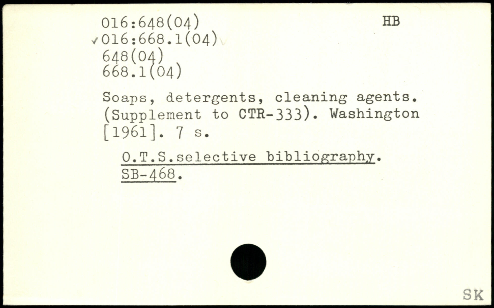 Soaps, detergents, cleaning agents. (Supplement to CTB-333). Washington