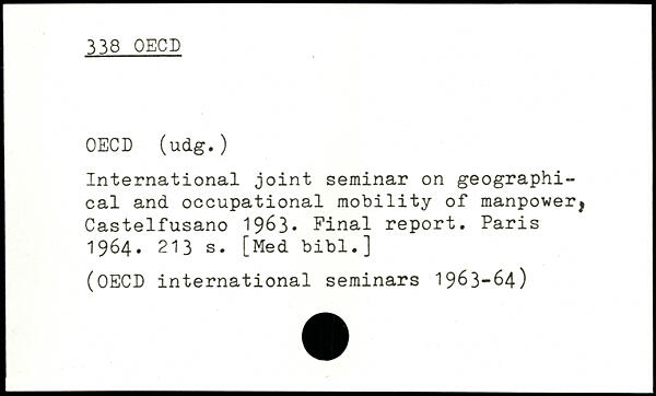 International joint seminar on geographi-cal and occupational mobility of manpower^ Castelfusano 1963- Final report.