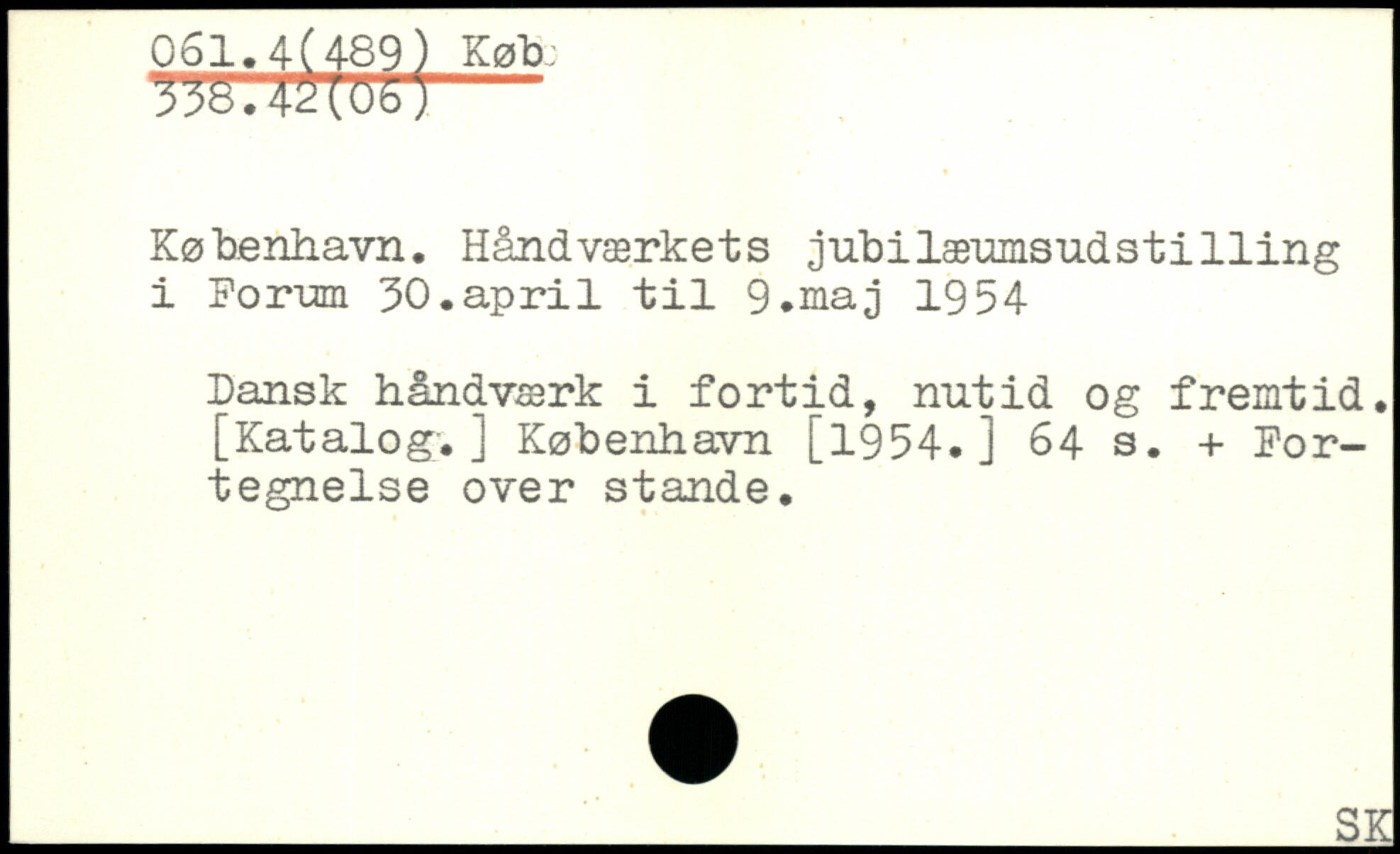 København. Håndværkets jubilæumsudst1111ng i Foro^n 30.april til 9.maj 1954 Dansk håndværk i fortid, nutid og fremtid. [Katalog.] København