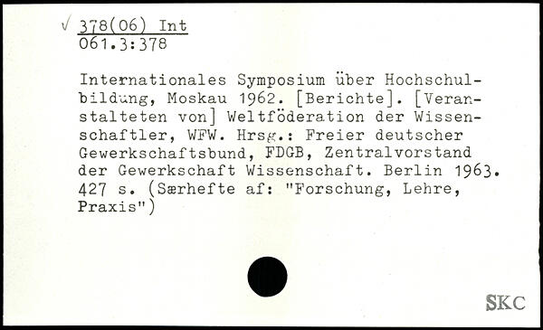 Internationales Symposium über Hochschulbildung, Moskau 1962.