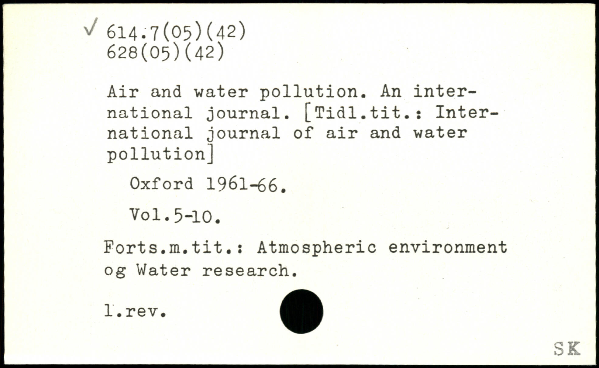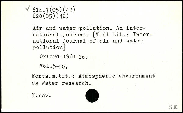 Air and water pollution. An international journal. [Tidl.tit.i International journal of air and water pollution]