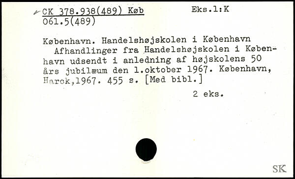 København. Handelshøjskolen i København Afhandlinger fra Handelshøjskolen i København udsendt i anledning af højskolens 50 års jubilæum den 1.oktober 1907.