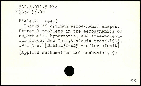 Theory of optimum aerodynamic shapes. Extremal problems in the aerodynamics of supersonic, hypersonic, and free-molecular flows.