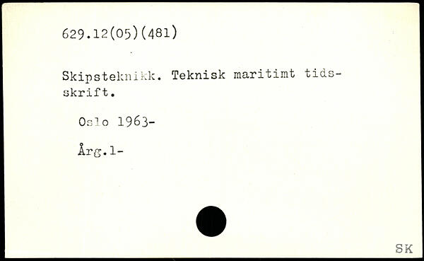 Skipsteknikk. Teknisk maritimt tidsskrift. Oslo 1963- kvQ.1-