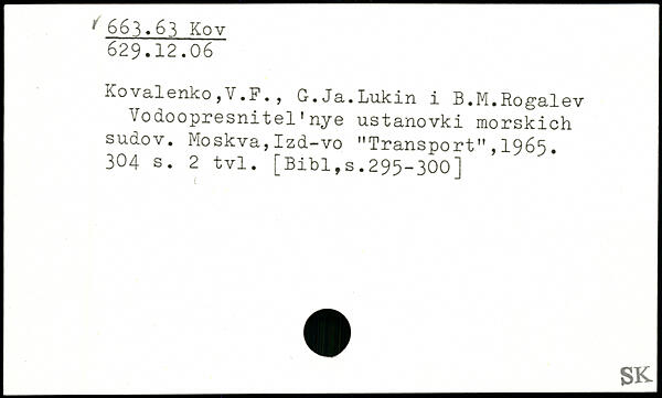 Kovalenko,V.F., G.Ja.Lukin i B.M.Rogalev Vodoopresnitel'nye ustanovki morskich sudov. Moskva,Izd-vo ”Transport",1965.