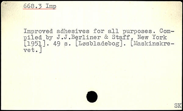 Improved adhesives for all purposes. Compiled by J.J.Berliner & Staff. New York L1951].